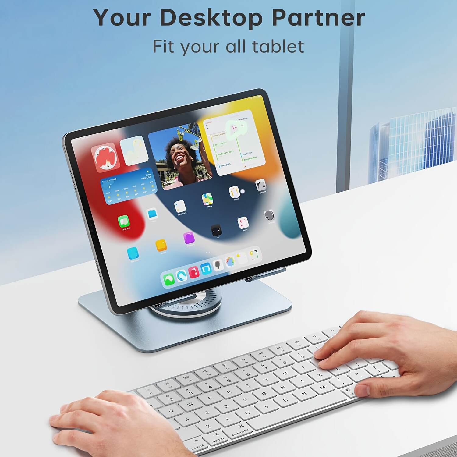 Tablet Stand With 360 Degree Rotating Base, Aluminum Tablet Stand, Convenient Foldable Tablet Stand, For iPad Universal Tablet Stand, Smartphone, Blue